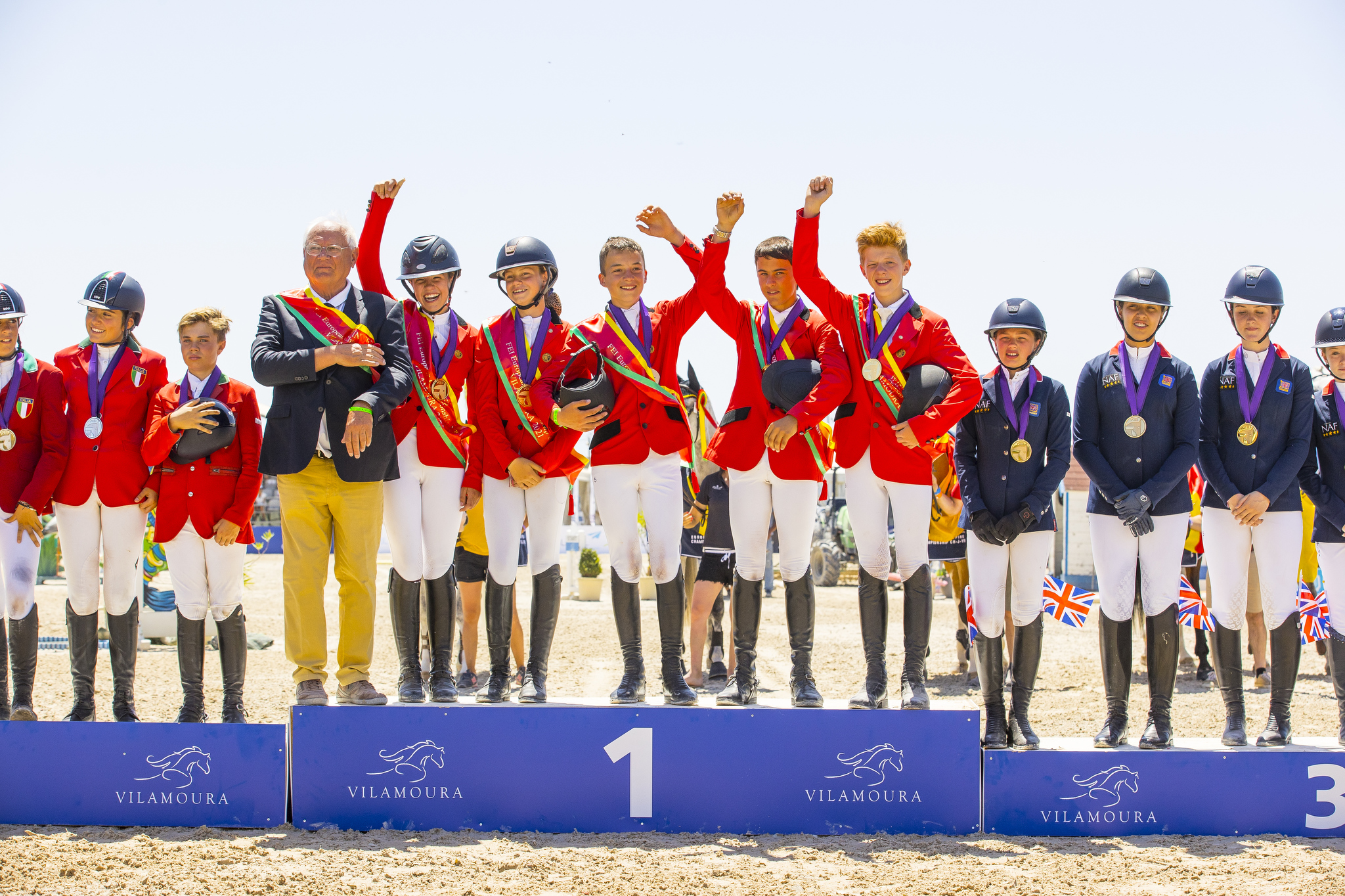 The Belgium youngster teams are making the impossible possible in Vilamoura, Portugal. After winning the team championships for Young Riders and Juniors, today the Belgians grabbed gold in the Children team competition as well. This afternoon, their incredible efforts in the jumping ring and their amazing team spirit took the team under chef d’equipe Jean Jacques Mathis to victory.