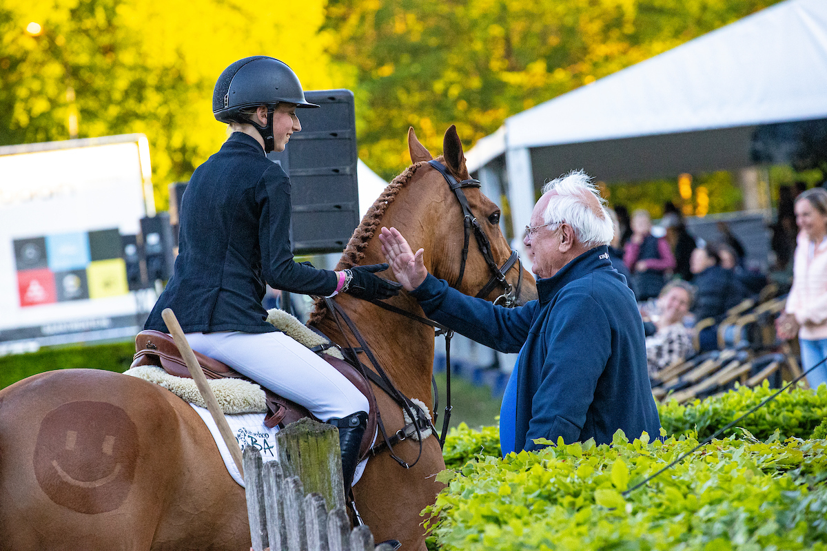 Met de twaalfjarige vosruin Navayo, een nakomeling van Jerome van de Vondelhoeve en een Nabor-merrie, won de Belgische ponyamazone Laure Tijskens deze avond de Groenoord Grand Prix. Zes combinaties kwalificeerden zich voor de barrage, waarbij slechts de top drie foutloos bleef. Laure legde haar rondje het snelste af: 38,91. De amazone kwam als laatste aan start en verpletterde de tijd van Hanna Bräuer compleet. De Duitse amazone reed haar donkerbruine Do It Again-ruin Cookie 60 in 41,16 seconden over de finishlijn. In het zadel van de tienjarige For Next Generation-zoon Minerva For Play werd de Nederlandse Logan Fiechter derde.