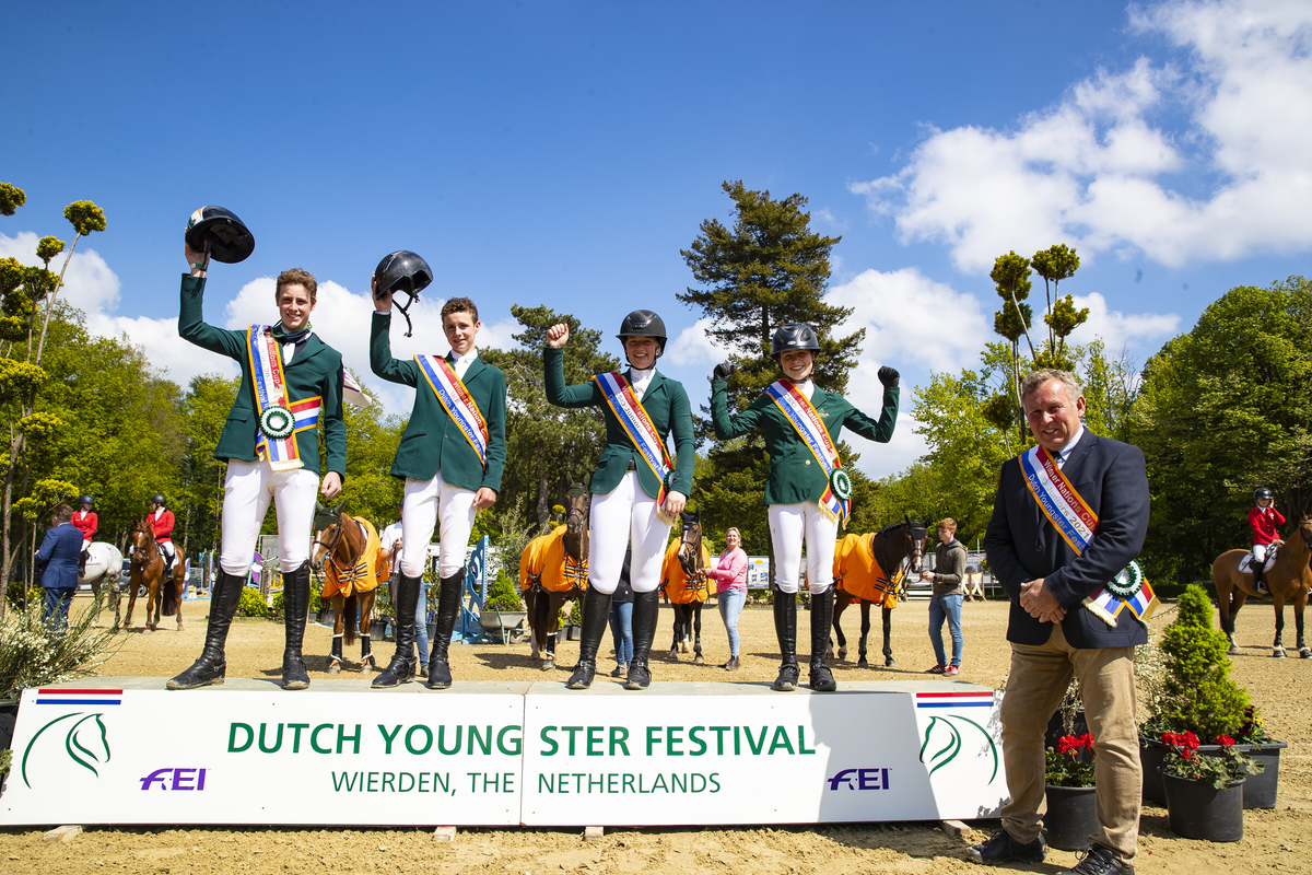 Het Ierse Junioren-team won zojuist de Nations Cup op het Dutch Youngster Festival. Het team, onder de hoede van chef d’equipe James Kernan kwam over twee rondes op een strafpuntenscore van 5 punten. Het Belgische team greep het zilver met 9 strafpunten en het brons ging naar Duitsland met een totaal van 14 strafpunten.
