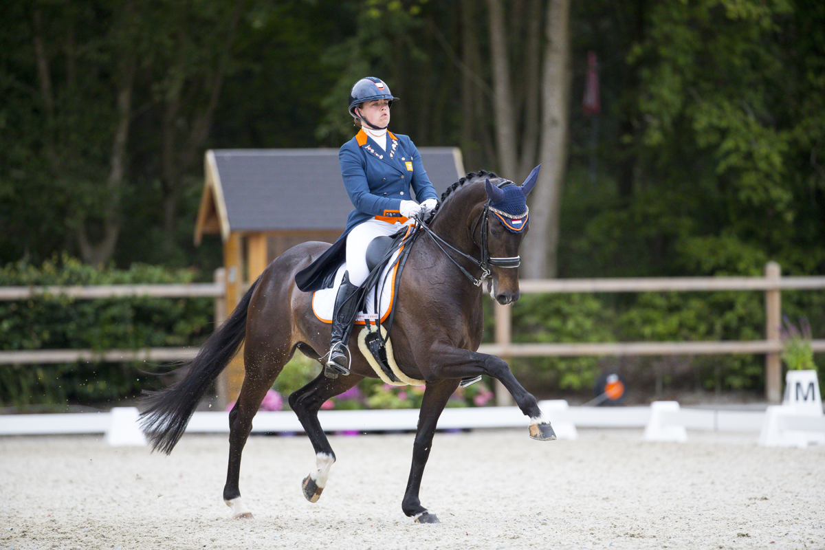 De laatste observatie wedstrijd had voor Jasmien en Esperanza (v. Desperados) niet beter kunnen eindigen. Met een nieuw persoonlijk record van 75.382% ging ze vandaag ruimschoots aan de leiding. De gedreven Jasmien was had een hele fijn proef kunnen neerzetten maar zag toch wat verbeterpuntjes voor morgen. Tweede plaats ging naar Suzanne van de Ven en D’Avicci (v. Jazz): zij behaalden een eind score van 69.853%. De Duitse Alexa Westendarp en haar Diamond Hit-nakomeling Der Prinz eindigden op een derde plaats met een score van 68.971%.