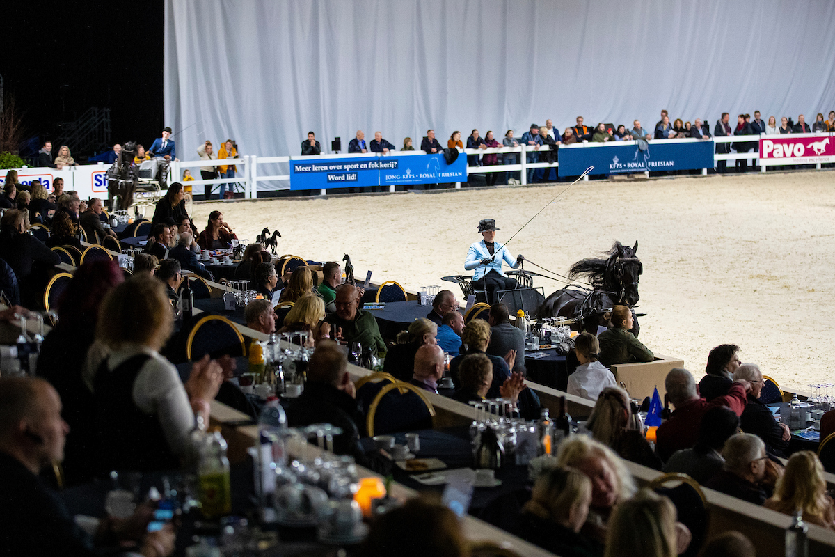 De vrijdagmiddag tijdens de KFPS Hengstenkeuring in Leeuwarden stond in teken van de finales van de Horses2Fly KFPS Sportcompetitie Tuigen. Het waren Rinse P.J., Ulbe 506, Wende van de Zunne en Ysbrand P. J. die de kampioenschapstitels in hun respectievelijke rubrieken mee naar huis mochten nemen. Het was de merrie Wende van de Zunne die de hengsten de baas was. De elegantie en het extreem gebruik van het achterbeen deed de jury besluiten Wende algeheel kampioen te maken. “Ze heeft enorm veel looplust”, complimenteerde Henk Hammers de merrie, die in eigendom is van de Amerikaanse Rosanne Palermo die zelf in Leeuwarden de hoofdprijs in ontvangst mocht nemen. “Dat ze vier hengsten de baas is blijft wel heel bijzonder.”