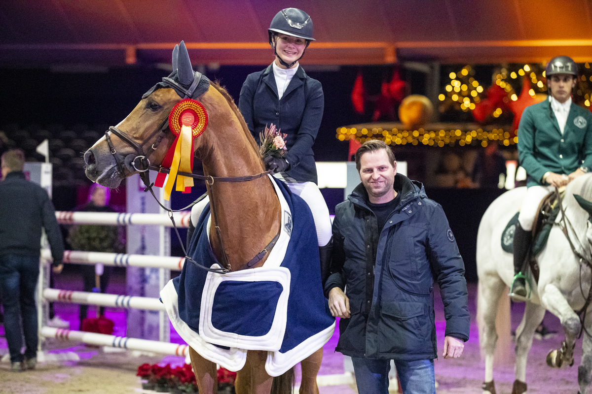 Waar het gisteren nog een mengeling was van nationaliteiten die op kop eindigden tijdens de openingsdag van Jumping de Achterhoek, laten vandaag vooral de Nederlandse jeugdcombinaties zich van hun beste kant zien. De eerste rubriek van de dag – de Small Tour PSC Lichtenvoorde Prijs voor CSIJ- en CSI25-combinaties over 1,20 meter – werd namelijk gewonnen door Hilde Veenstra en haar succesvolle After Pleasure Toltien (v. For Pleasure). De gehele top drie bestond overigens uit Nederlanders, want naast Hilde mochten ook Hanna de Vries met Numero’s Diamond en Babette Haanschoten met Athene de prijsuitreiking binnenrijden.