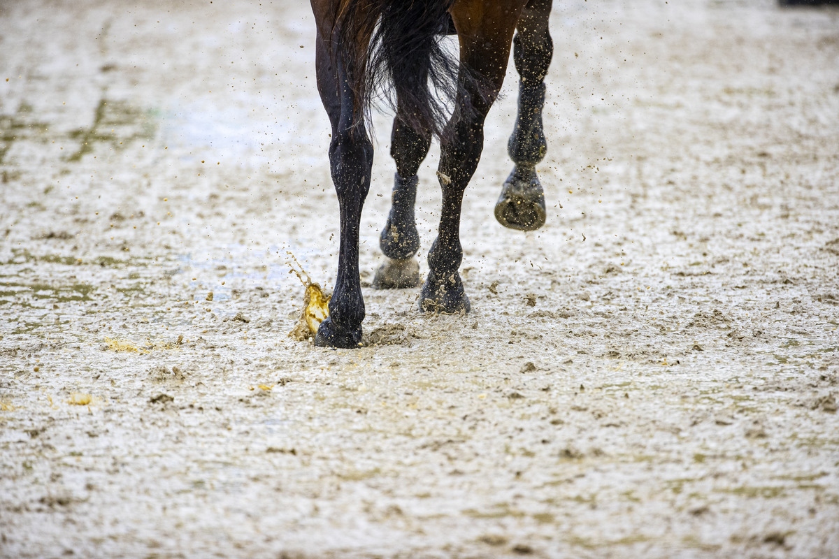 De organisatie heeft besloten de iets minder intensieve en hoge rubrieken vandaag af te werken, om de combinaties te sparen en het terrein de kans te geven het overvloedige water af te voeren. Vanuit het deelnemersveld en de chefs d’équipe van de aanwezige landen is hier alle begrip voor.